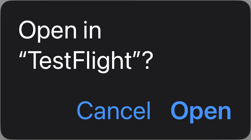 - Tryck på Öppna-knappen i dialogen "Öppna i TestFlight".